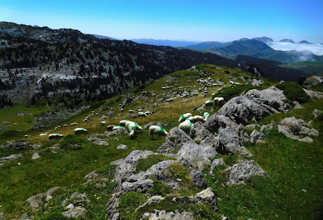Creo que no hay mucho que decir sobre esta pequeña gran montaña. ARLAS es el pico mas facil de subir de la zona de LARRA - BELAGUA. Su forma piramidal y el hecho de estar situado junto al COLLADO DE ERNAZ y la estación de esquí de ARETTE lo hacen inconfundible, este es uno de los símbolos del lugar. Aquí vais a ver la forma mas habitual de ganar su cima, esa no es otra que la que parte desde el punto en el que estuvo situada LA PIEDRA DE SAN MARTÍN. Hoy en día en su lugar se encuentra un mugarri con el número 262. Doy por hecho que - casi - todos y todas sabéis mas que de sobra que este es el rincón en el que cada 13 de Julio y desde el siglo 14 se celebra el TRIBUTO DE LAS TRES VACAS. Uno de los actos culturales mas visitados de nuestra tierra. Al menos de un tiempo a esta parte. Este acto consiste en la entrega de tres vacas por parte del representante del VALLE DE BARETOUS al alcalde de ISABA, uno de los pueblos de ERRONKARI. El alcalde de Ansó hace las veces de un juez de paz en dicho quilombo. El caso es que todo esto tiene su origen en un asesinato producido en ¡¡¡ 1373 !!!. Se dice, se cuenta, que un buen día un pastor de ISABA llamado PEDRO KARRIKA, coincidió con el baretones PIERRE SANSOLER en la fuente situada en la base de ARLAS. El caso es que discutieron y el bueno de KARRIKA se cargo al infeliz de SANSOLER. Acto seguido un primo del tal SANSOLER, reunió a un grupo de personas y bajó hasta BELAGUA para ver si encontraba a KARRIKA. En vez de encontrar a este, encontraron a su mujer, que para colmo estaba embarazada y la mataron. El globo se siguió hinchando, y cuando se enteraron de esto en ISABA, el bueno de KARRIKA reunió a un grupo de vecinos de este y otras partes del valle y cruzaron la sierra con sed de venganza. Lo que hicieron debió ser una masacre, porque se cargaron al primo, a los tíos, y a buena parte de los vecinos del pueblo hasta el que bajaron. Supongo que seria ARETTE. Como la violencia engendra violencia, esta reyerta duro unos cuantos años. Osease, que aquello debía de ser un territorio de guerra pero en pequeño. Valle contra valle, para que me entendáis. Nada que no sucediese en otros lugares en la edad media, por aquel entonces lo suyo era arreglar todo a limpia hostia. El caso es que todo terminó en la BATALLA DE AGINCEA, Si, estáis leyendo bien, BATALLA - asi con mayúsculas -. Imaginaros lo que tenían que ser estos valles en aquellos tiempos. Casi, casi, casi, territorios independientes, y mas tan cerca de las montañas. La cosa se puso muy seria, y tuvo que intervenir la corona. Osease, el REY DE NAVARRA, el REY DE ARAGON, y el vizconde de BARETOUS. La función del rey de ARAGON fue la de ejercer de juez de paz. Una suerte de arbitro. El acuerdo al que llegaron es lo que hoy conocemos como el TRIBUTO DE LAS TRES VACAS. Ese es el motivo por el que siempre está ahí el alcalde de ANSÓ. En representación de ARAGON. Si os he contado este rollo que puede que no os interese lo mas mínimo, es para que veáis que ARLAS no es un monte cualquiera, forma parte de un cachito de nuestra historia. Las fotos y sus comentarios os sacarán de dudas.